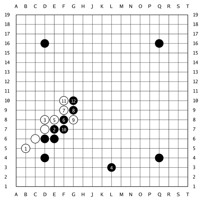后来,黑棋在左下角压了一步,白爬了一手,记录完。全局棋谱如下: